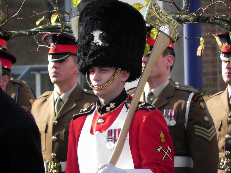 Soldiers of the Royal Welch Fusiliers wear a flash, consisting of five overlapping black silk ribbons on the back of their jackets. This dates from a time when it was usual for soldiers to wear powdered pigtails. In 1808, the Fusiliers were serving in Nova Scotia and never received the instruction aboloshing the practice. When they returned to England in 1834, King William IV gave his consent for the officers to continue wearing the flash as something peculiar to the regiment and the honour was later granted to all ranks.