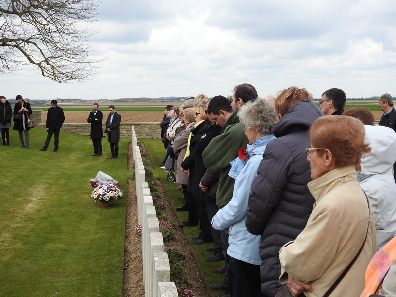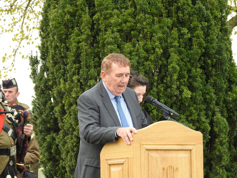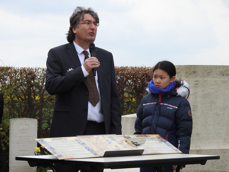 Maire of Hulluch André Kuchcinski paid tribute to the soldiers who fought and died here and reminded the gathered onlookers that there was an obligation to remember the fallen. Music was provided by the Somme Battlefield Pipe Band and local schoolchildren.