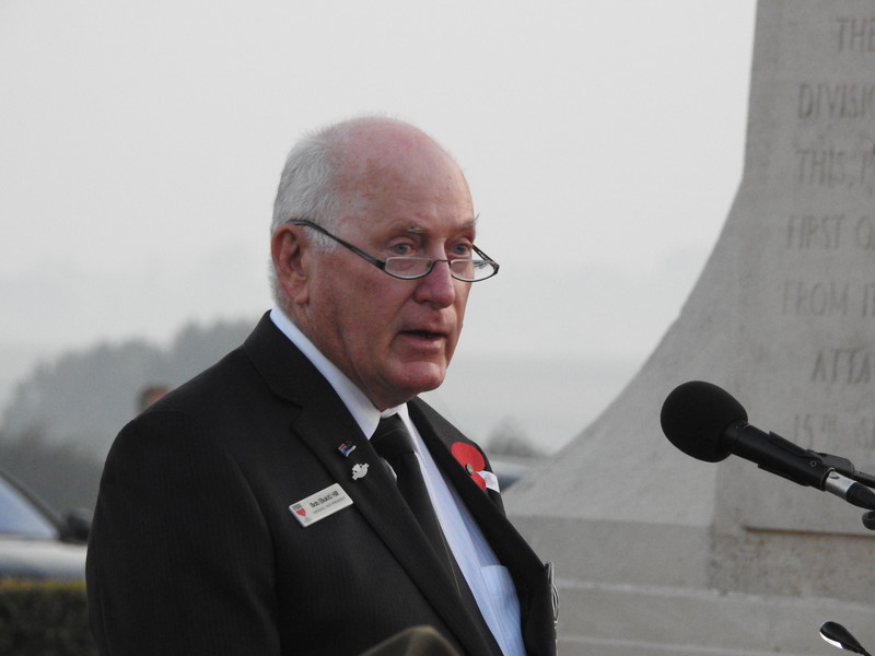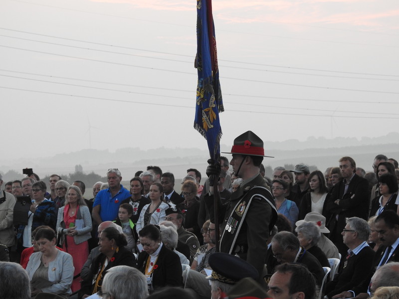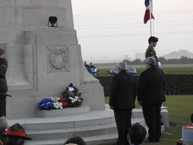 The weather was supposed hold until early afternoon and as we listened to New Zealand’s Ambassador to France, His Excellency Dr James Kember, and the Chief of Defence Force, Lieutenant General Tim Keating, recall the horror and cost of the battles we were greeted by a clear dawn and an impressive sun climbing into the sky.