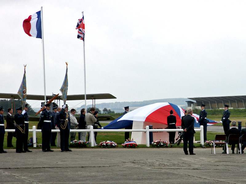 The Memorial was unveiled by Air Chief Marshal Sir Brian Burridge, Commander-in-Chief Headquarters Strike Command, and Lieutenant-General Jean Patrick Gaviard of the French Air Force on 11th September 2004.
