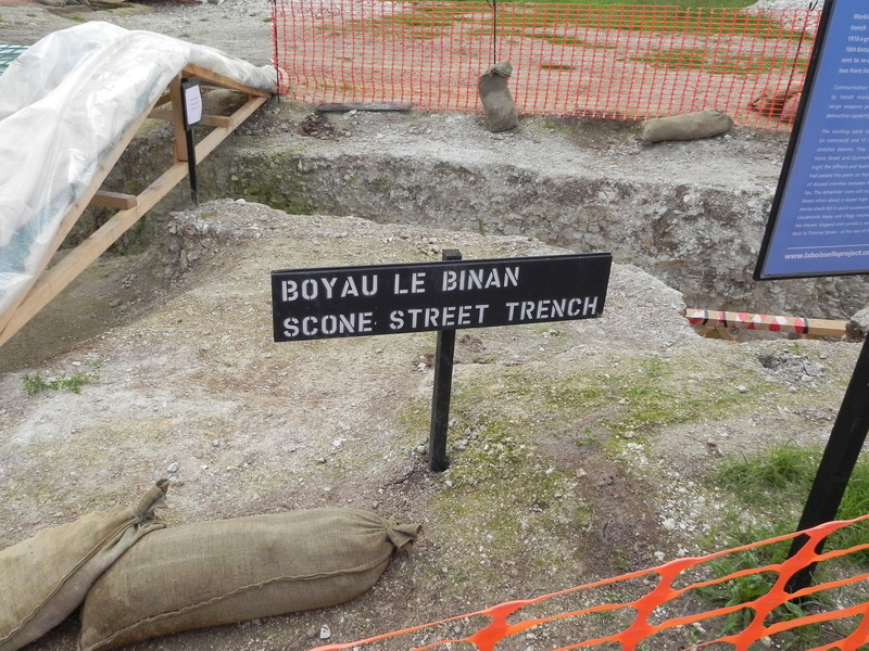The enormous crater at Lochnagar is just up on your right whilst a larger crater known as Y Sap was blown just across the main road a few hundred metres towards Bapaume. That hole was later filled in and Lochnagar was only saved by the purchase of the land by Richard Dunning.