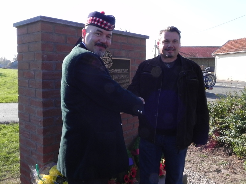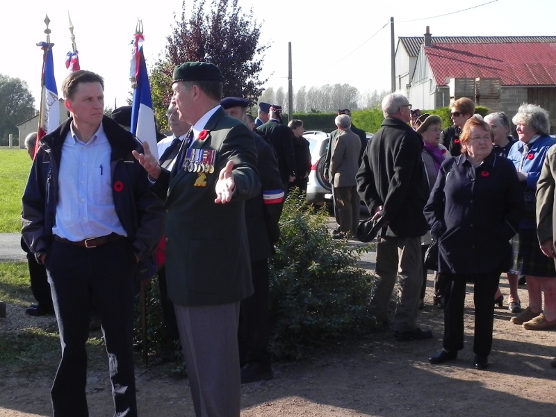 Joining M Jean-Marie Douvry, Maire de Festubert and Brigadier General (Retd) Greg Young of the 15th Bn Memorial Project were M Jean-Dominique Iéraci, Ministre-Conseiller representing the Government of Canada, Colonel Richard Gervais the Canadian Defence Attaché and Honorary Lieutenant Colonel John Newman of the 48th Highlanders of Canada.