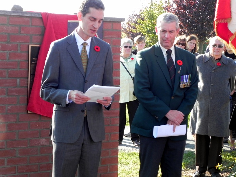 The old Canadian Flag used to drape the plaque was kindly lent by Captain Steve Gilbert. The flag had belonged to his grandfather a Great War veteran who had been wounded on the Somme.