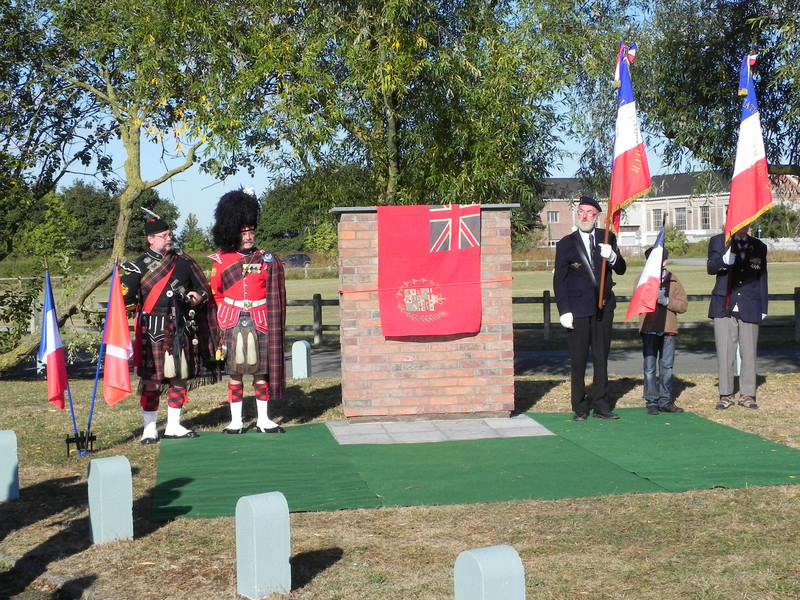 Lt Colonel (Hon) John Newman of the 48th Highlanders and M Jakuboszczak unveiled the plaque and wreaths were laid on behalf of the Regiment, the village, Lens and Liévin, Canadian Embassy, 48th Highlanders Old Comrades Association, and the Royal British Legion.