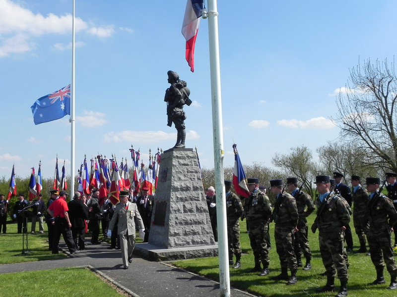 The late Spring in France broke for twenty-four hours on the 25th April. The sun came out and the temperature soared. It was so hot that the sapeurs-pompier were required to treat a number of people during the ceremony for heat exhaustion.