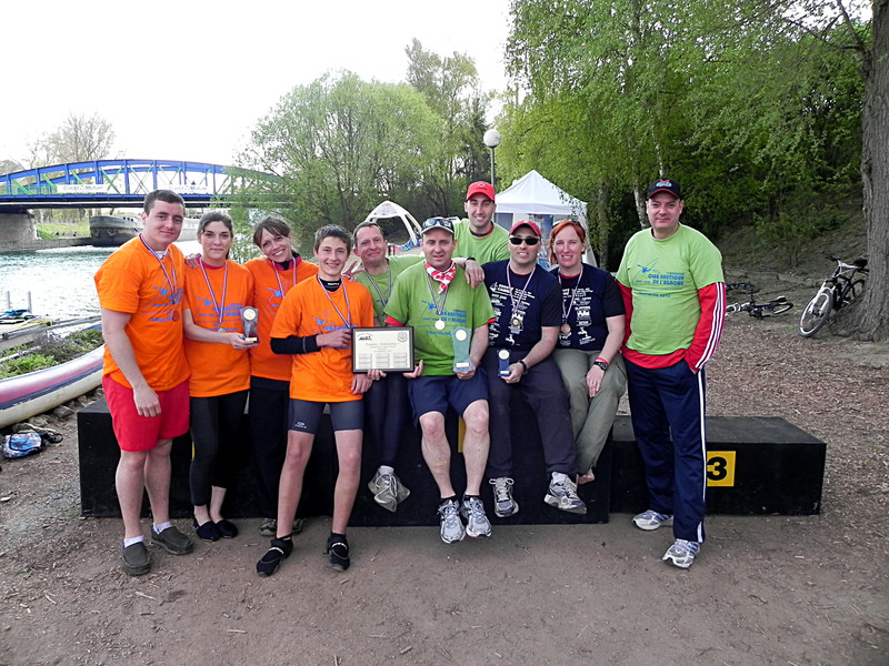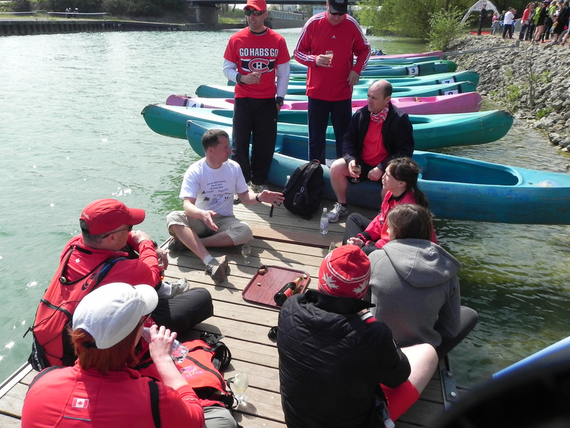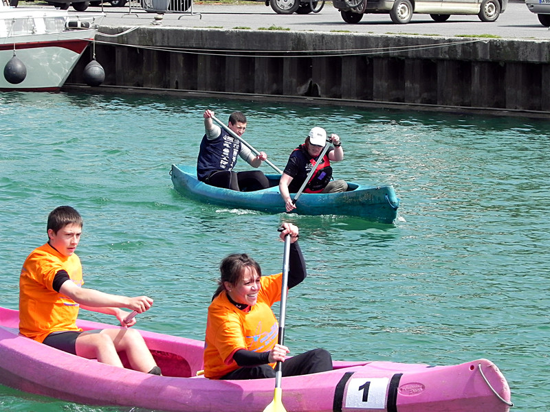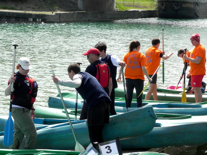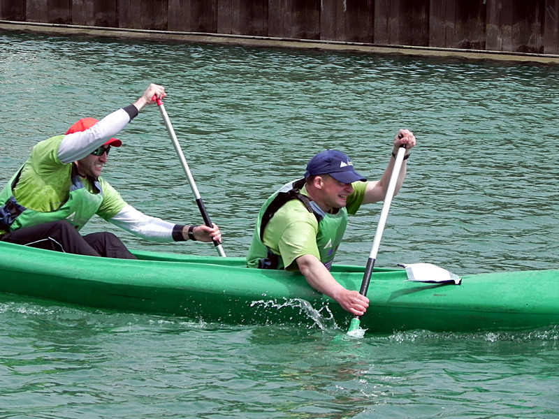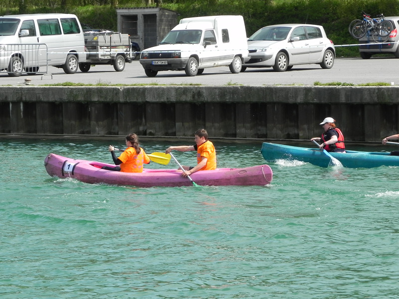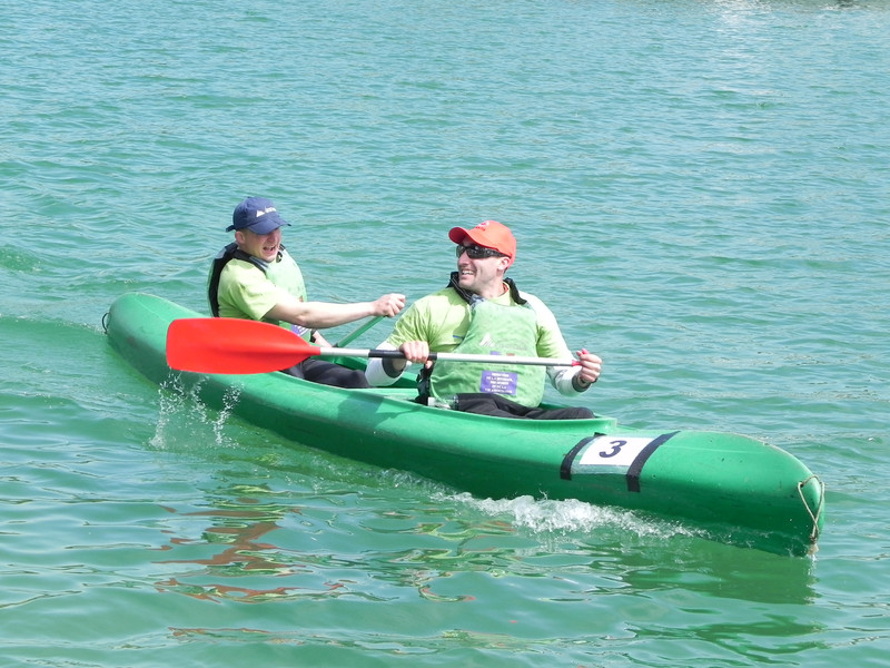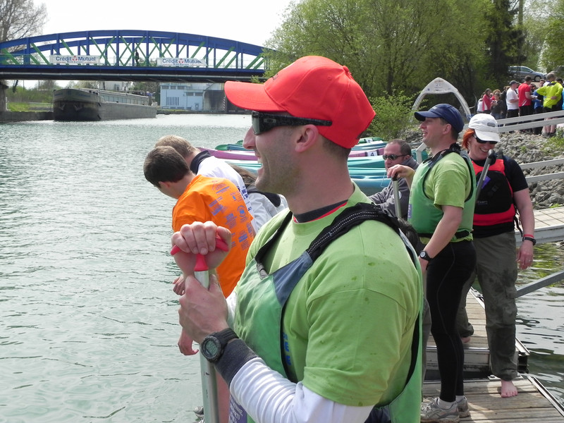 Everyone soon got into the swing of encouraging their team mates in a mixture of French and English. Although the canal is quite calm, the going was a lot harder than some may have thought. As the crews had not been able to practice together beforehand much laughter was to be heard as canoes encountered some early difficulty in keeping a straight line.
