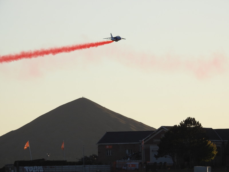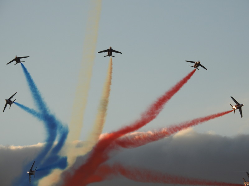 The Patrouille de France opened the evening’s aerial displays as the sun began to set. As the evening progressed the aircraft began using flares in their displays.